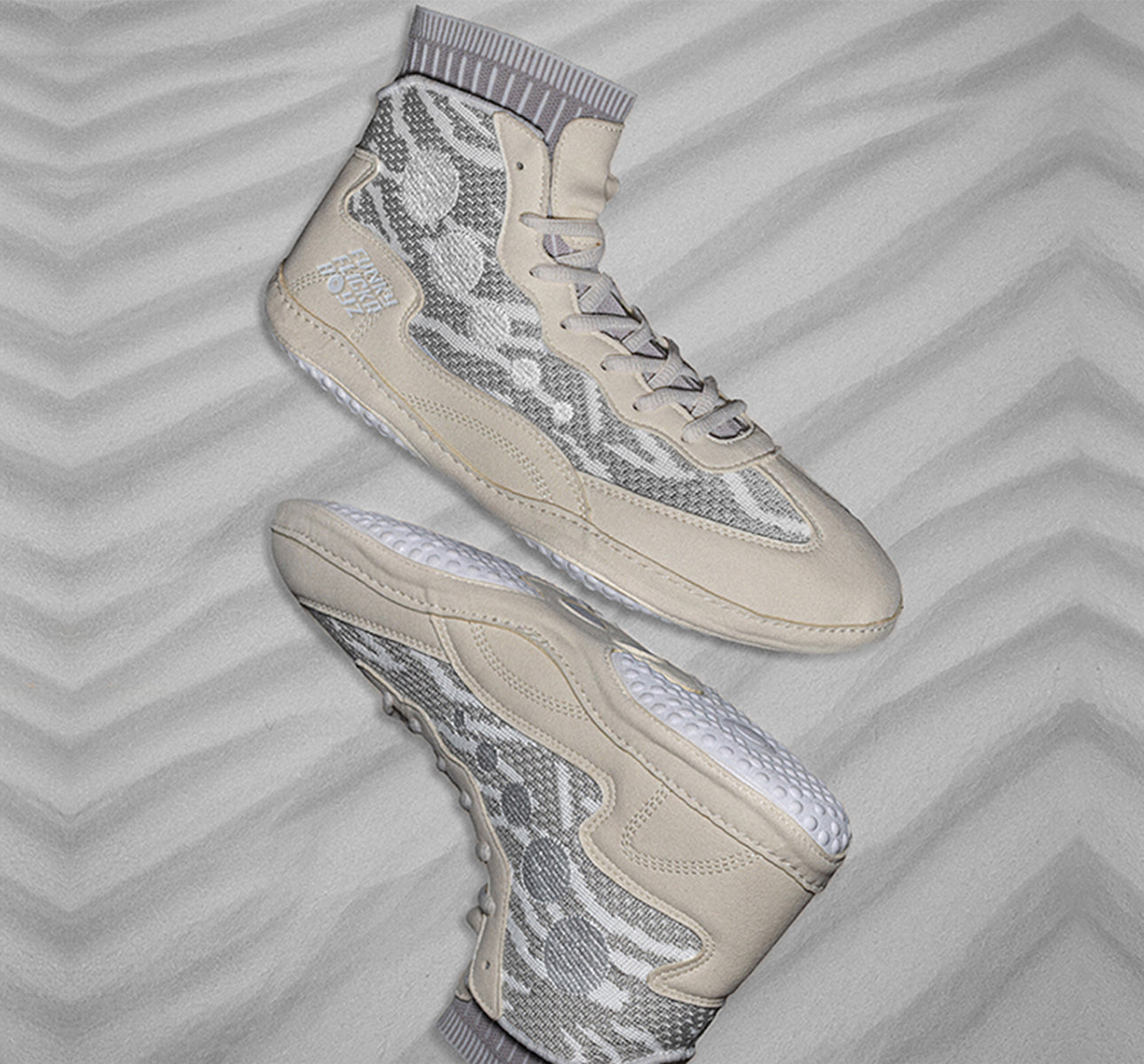 Get a competitive edge on the mat with the FFB Interlude "Blanc" Wrestling Shoes. Named after its neutral, light tones, the shoes are guaranteed to turn heads. The shoes were built to maximize flexibility, support, and grip. Our premium Funkknit technology allows for the best fitting wrestling shoe on the market. The shoes feature an Unlimited Traction Split Sole to ensure you never slip on the mat again. The new Interlude design features a revolutionary, premium, microsuede material to maximize durability. Combining proven old-school success with advanced technology.