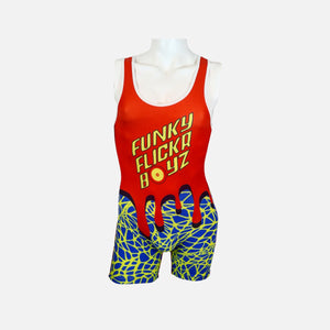 Take the mat in maximum style with the Funky Flickr Boyz "Shockwave Singlet". Designed to maximize athletic performance, flexibility, and breathability.
