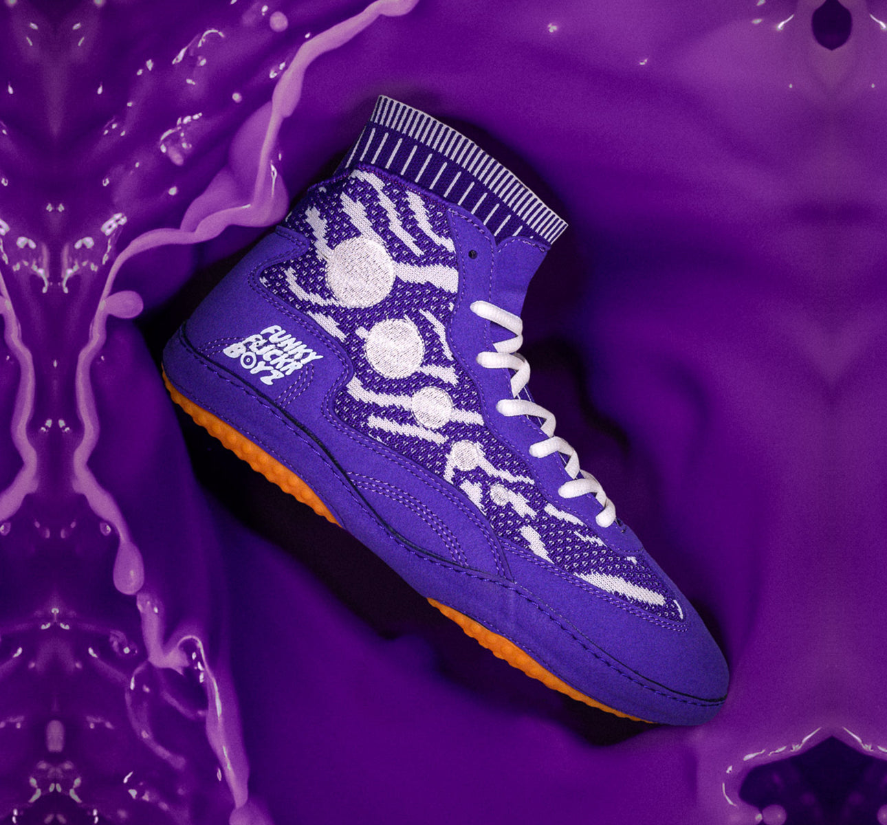 Get a competitive edge on the mat with the FFB Interlude "Jelly" Wrestling Shoes. Named after its purple accents, the jelly-inspired shoes are bound to make all of your opponents "jelly". The shoes were built to maximize flexibility, support, and grip. Our premium Funkknit technology allows for the best fitting wrestling shoe on the market. The shoes feature an Unlimited Traction Split Sole to ensure you never slip on the mat again. The new Interlude design features a revolutionary, premium, microsuede material to maximize durability. Combining proven old-school success with advanced technology.