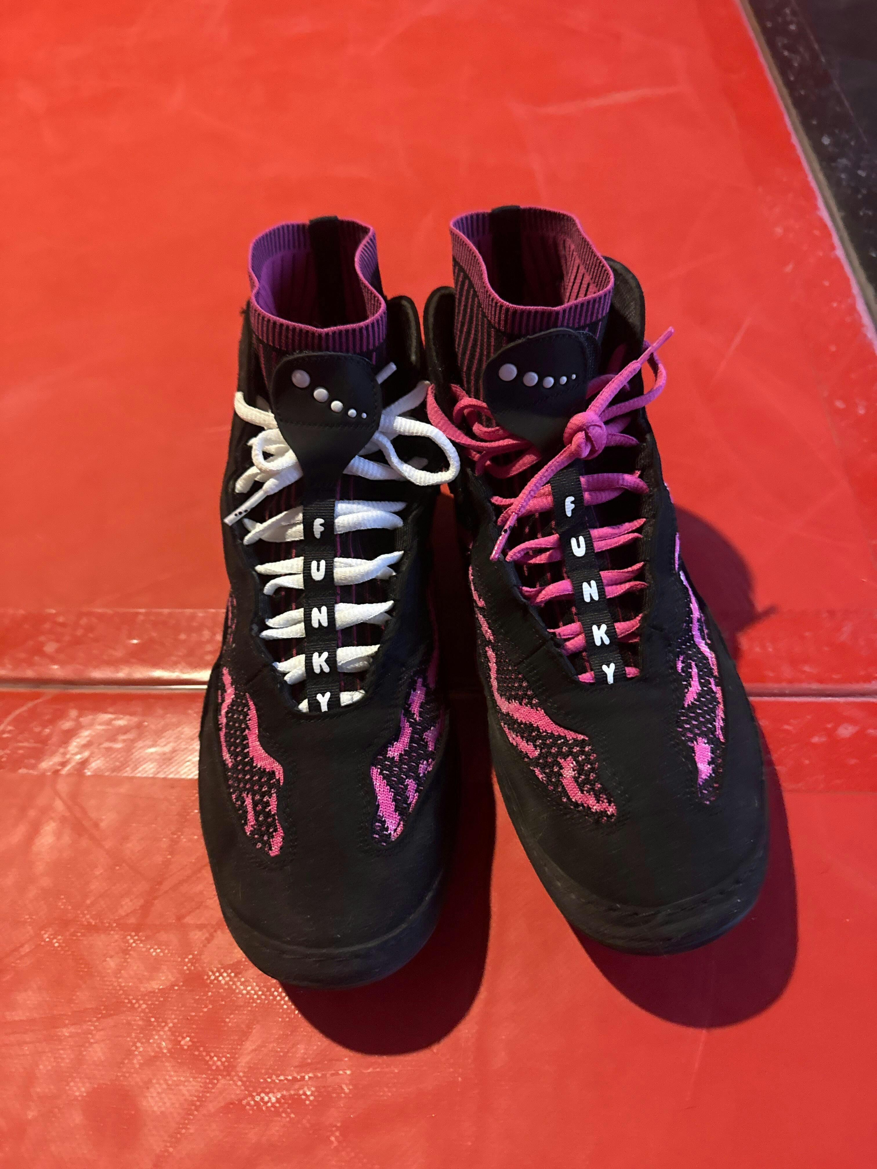 The FFB Postlude “Orchid” delivers a vibrant, electric twist to high-performance wrestling footwear. Deep blacks meet striking pink accents in a colorway that’s as bold as it is clean. Designed with all the performance innovations of the Postlude line, the “Orchid” doesn’t just look sharp, it wrestles sharp.