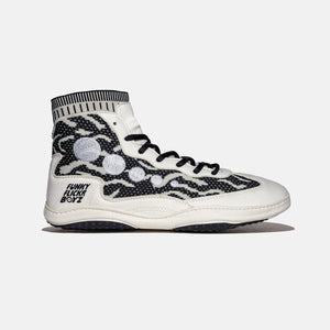 Get a competitive edge on the mat with the FFB Interlude "Domino" Wrestling Shoes. Named after the off white and black tile, the shoes will go with any singlet. The shoes were built to maximize flexibility, support, and grip. Our premium Funkknit technology allows for the best fitting wrestling shoe on the market. The shoes feature an Unlimited Traction Split Sole to ensure you never slip on the mat again. The new Interlude design features a revolutionary, premium, microsuede material to maximize durability. Combining proven old-school success with advanced technology.