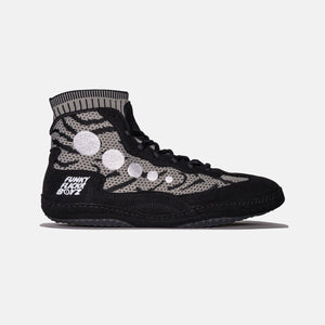 Get a competitive edge on the mat with the FFB Interlude "Elephant" Wrestling Shoes. Named after its grey and black accents, the shoes are bound to take charge of the mat! The shoes were built to maximize flexibility, support, and grip. Our premium Funkknit technology allows for the best fitting wrestling shoe on the market. The shoes feature an Unlimited Traction Split Sole to ensure you never slip on the mat again. The new Interlude design features a revolutionary, premium, microsuede material to maximize durability. Combining proven old-school success with advanced technology.