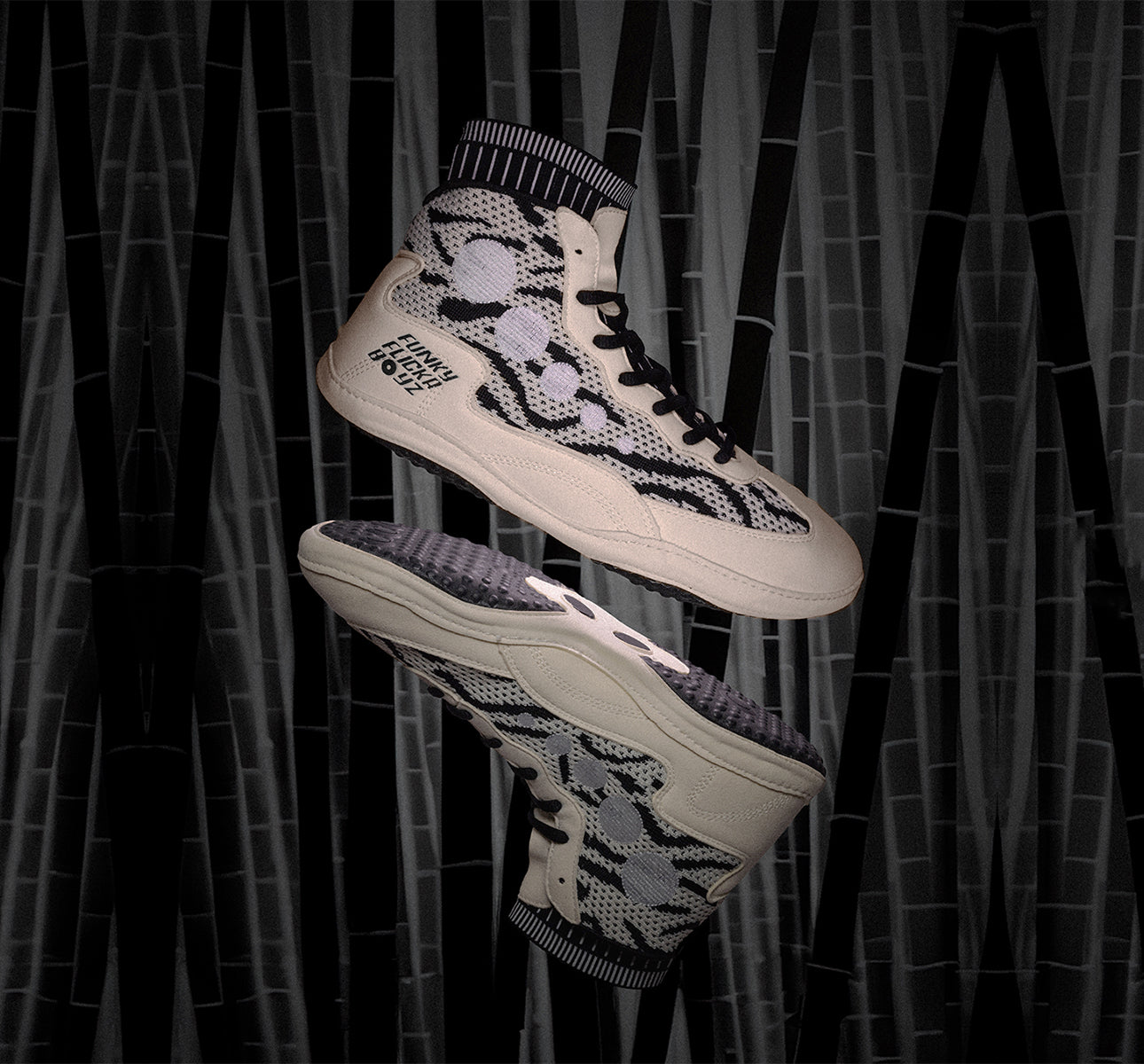 Get a competitive edge on the mat with the FFB Interlude "Panda" Wrestling Shoes. Named after its black and white accents, the shoes are guaranteed to look good with any singlet. The shoes were built to maximize flexibility, support, and grip. Our premium Funkknit technology allows for the best fitting wrestling shoe on the market. The shoes feature an Unlimited Traction Split Sole to ensure you never slip on the mat again. The new Interlude design features a revolutionary, premium, microsuede material to maximize durability. Combining proven old-school success with advanced technology.