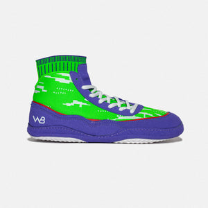 Get a competitive edge on the mat with the WB4.0+ "Joker" Wrestling Shoes, the most technologically advanced WB wrestling shoe made to date. Limited to 100 total pairs. Named after its neon green, purple, and red accents, the shoes are destined to turn heads. The WB4.0+ model features our brand new Carbon Fiber Power Plate technology. Designed and built to maximize power, speed, and efficiency. Our premium Funkknit technology allows for the best fitting and most comfortable wrestling shoe on the market. The shoes feature an Unlimited Traction Split Sole and our diag-lace system to further enhance performance well beyond the competition.